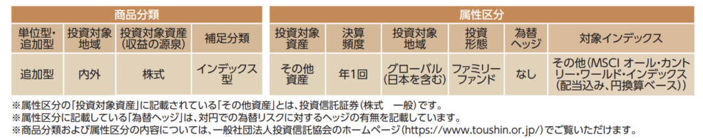 商品内容が一目でわかるよう、目論見書などにも明記されています。